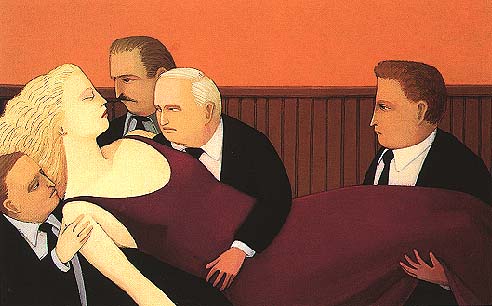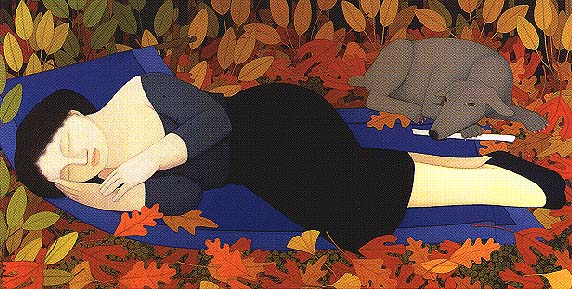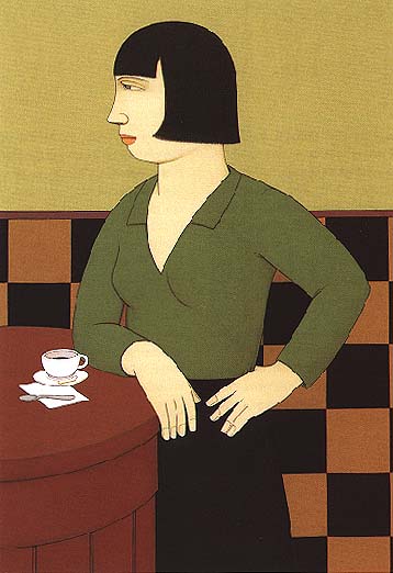 Images from left to right: Woman with Autumn Leaves, 1994, Private Collection; Fallen Diva, 1981, oil on linen, 4 x 6 1/2 inches, Collection of Dr. and Mrs. Bernard Cohen; Nadine with Espresso, 1998, oil on linen, 24 x 17 inches, Private Collection; One Shot Jimmie's, 1988, oil on linen, 40 x 50 inches, Collection of Mr. and Mrs. Craig Hill