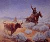 (right: Edward Borein, Cowboy Roping a Steer, 1919, oil on