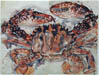 left to right: Jardinere: Man Horse, Chariot, c. 1935, ceramic, Collection of Lee County Library, Tupelo, MS; Cat, ceramic roof ridge cap, c. 1930, Collection of Susan Ruddiman, Ocean Springs, MS; Palmettos, c. 1955, watercolor, Collection of Charles Atwood; Hong Kong Crab, c, 1949, watercolor, Collection of Louise Ross, NYC; Bringing Bob Home, © The Family of Walter Anderson