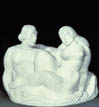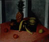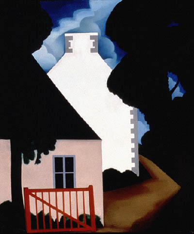 From left to right: Niles Spencer (American, 1893-1952), Still Life with Pineapple, c. 1929, oil on canvas, 25 x 28 3/4 inches, Hamilton Easter Field Art Foundation Collection; Robert Laurent (American, b. France 1890-1970), Hero and Leander, c. 1948, limestone, 27 x 39 x 20 inches, Hamilton Easter Field Art Foundation Collection; George C. Ault (American, 1891-1948), House in Brittany, 1925, oil on canvas, 21 3/4 x 18 1/4 inches, Hamilton Easter Field Art Foundation Collection