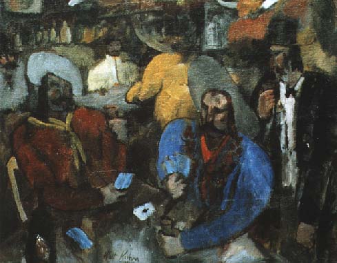 "Walt Kuhn once commented that the first picture he ever painted and got paid for was a back-bar decoration in a San Francisco saloon. This must have been around 1900, when he made his first trip west.. Although the subject matter of this first commercial enterprise remains unknown it very likely was a picture of the "wild and woolly west," for this was a major interest to him from his earliest years and remained so all through his life.