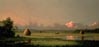 More than one-fifth of Heade's entire oeuvre is dedicated to northeastern salt marshes, accounting for more than 150 views. Heade began painting marshes in 1859, and continued to work on them until his death 45 years later. His favorite marshes were the ones in the adjoining towns of Newbury and Newburyport, but he also painted them in Rowley, Lynn, and Marshfield, Massachusetts, as well as in Connecticut and Long Island. Other landscape painters of Heade's era, such as Church and Albert Bierstadt, specialized in painting large-scale, dramatic views of such spectacular sights as the Rocky Mountains or Niagara Falls, illustrating the sublime power of nature. Heade demanded of himself originality, and although the marsh was familiar, it was a new subject for the American painter. It was also a place Heade loved, where he could study the subtleties of changing color and light, and the ways a winding tidal river or row of haystacks can lead the eye through a composition. There are several highlights in this gallery, including the newly discovered work Sunset Marsh (1868) and the peaceful Marshfield Meadow (1877-78).
