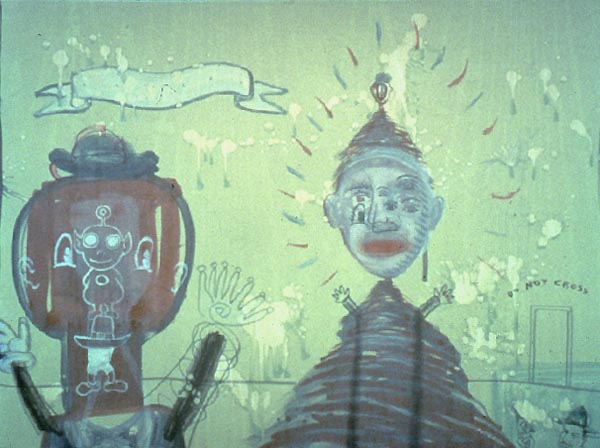The exhibition includes Chagoya's newest codice, Les Adventures des Cannibales Modernistes, which was completed in late 1999. The codice does not have a particular story, yet it is subject to multiple interpretations depending on the viewer's personal reaction to the various symbolic characters and actions within the piece. Also included are several paintings on amate paper that appear as pseudo-artifacts because the stereotypical subjects and cartoon figures are placed in a deliberately anachronistic manner.