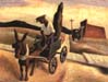 From top to bottom: Thomas Hart Benton, Lonesome Road, 1927, tempera on masonite, 25 x 34 inches; Ogden Fleissner, Morning Mass, 1928, oil on canvas, 42 x 54 inches; O. Louis Guglielmi, Phoenix, 1935, oil on canvas, 30 x 25 inches; Grant Wood, Arnold Comes of Age, 1930, oil on board, 26 3/4 x 23 inches; John Steuart Curry, Roadmenders' Camp, 1929, oil on canvas, 40 1/4 x 52 1/4 inches; Louis Bouche, McSorley's, 1940, oil on canvas, 41 x 50 inches.