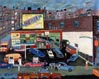 Many of the works in Fun City will be recognizable to local residents, as Fasanella painted nearby urban and suburban neighborhoods. These include Dobbs Ferry and Ardsley N.Y., as well as the east Bronx. where he worked at Happy and Bud's Service Station.