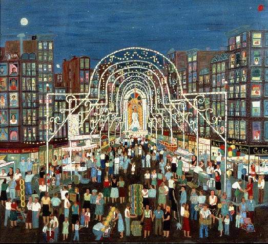 Hailed by New York Magazine as the "best primitive painter since Grandma Moses," Fasanella (1914-1997) did not paint the quaint rural scenes of his predecessor. Rather, this long-time Westchester resident celebrated the urban working class, immigrant life and the American dream.