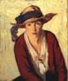 Left to right: Mabel Alvarez, Portrait of Mrs. McGee Bernhart, c. 1918, oil on canvas, 25 x 30 inches, Collection of Mrs. Joseph Moure, Pasadena, California; William Merritt Chase, Self-Portrait, c. 1914, oil on canvas, 20 x 16 inches, Collection of The Detroit Institute of Arts, Gift of the artist; Guy Rose, Marguerite, c. 1918, oil on canvas, 15 x 17 inches, Collection of The Bowers Museum of Cultural Art, Santa Ana, California, Martha C. Stevens Memorial Art Collection; Herbert Chester Cressey, Contentment, c. 1918, oil on canvas, 36 x 40 inches, Courtesy of Michael Johnson Fine Arts, Fallbrook, California