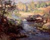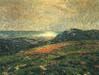 The works on view illustrate the diversity of "plein air" styles developed by Laguna artists. In Under a Blue Sky George Gardner Symons interprets the kinetic forces of the ocean with boldly applied strokes of pigment. Guy Rose, in contrasts, suggests more subtle distinctions in atmosphere and color in his Laguna Shores. The coastline of Connecticut River did not provide the Old Lyme artists with such dramatic subjects. Instead, they turned their attention to intimate views of winding tidal rivers and salt-water marshes as seen in Childe Hassam's Late Afternoon Sunset.