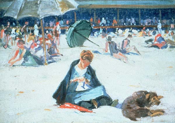 Bath House with Lady and Dog, c. 1912, oil on bord, Portland Museum