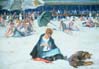 depicts vacationers at a crowded beach. George Bellows's In a Rowboat