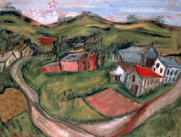 boats and small towns, painted in 1912, contrast the pulse of modern life