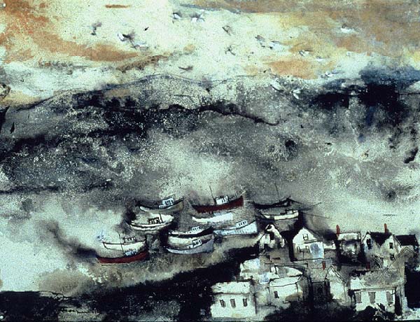 Northern Fishing Village, c. 1989, watercolor on paper, Caldbeck