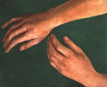 in Ranchos de Taos, New Mexico. (left: Hands, 1997, oil on
