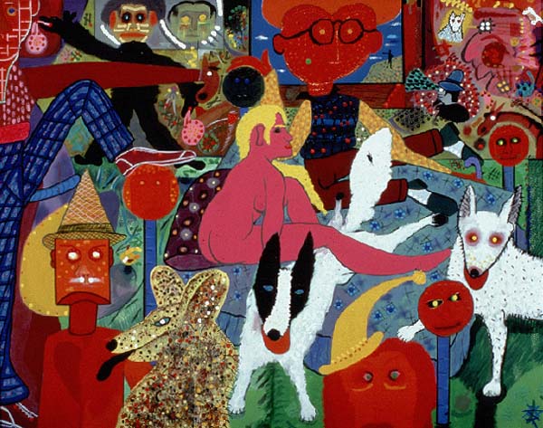 It is an exhibition of highly-charged, large-scale works of intimidating size. Boisterous allegories by Roy DeForest, techno-portraits by Ed Paschke, and politically-charged paintings by Jerry Kearns all compete for the viewer's attention in what promises to be an eye-catching exhibition,