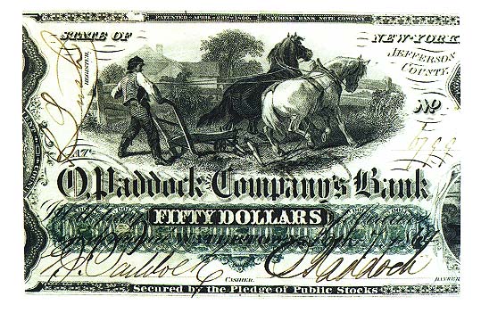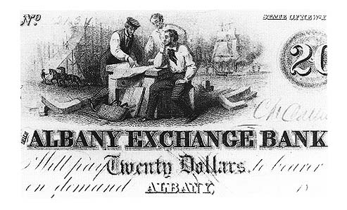 of paper as currency. (left: Albany Exchange Bank, New York, Twenty