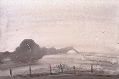 Farmyard '99 (#8), 1999, ink and washes on paper, 26 x 40 inches)