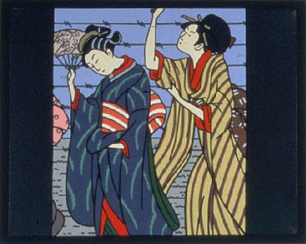 The exhibition is accompanied by 10 hand-colored lithographs entitled "Memories of Childhood." Shimomura calls these images "my first 10 memories of life." In addition, the exhibition will feature a special interpretive station, providing viewers with a forum to share their personal and familial experiences with the Japanese-American internment during World War II, as well as their responses to the exhibition.