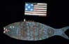 left to right: Daniel Muller (for Gustav Dentzel Carousel Co.), Goat Carousel Figure, before 1903, carved polychromed wood, 58 1/2 x 63 1/2 x 25 1/2 inches, © Shelburne Museum; Quilt - Major Ringgold Album, c. 1846, cotton, padded appliqued quilt, 93 x 110 inches, © Shelburne Museum; Eagle on Uncle Sam's Hat Tradesign, c. 1870, carved polychromed wood, inscribed, Eagle House, U.S., 23 3/4 x 24 x 11 inches, © Shelburne Museum; Tiger Pull Toy, 19th century, polychromed wood, 9 1/4 x 8 1/2 x 3 1/2 inches, © Shelburne Museum; Fish with Flag Sign, c. 1850, sawn and polychromed wood with polychromed iron flag, Found in Central New York, 34 x 61 x 2 1/2 inches, © Shelburne Museum.
