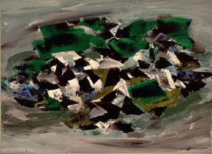 (left: Ward Lockwood, Episode, c. 1958, oil, 33 x 46 inches, Harwood