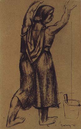 Dasburg, Woman Plastering, 1935, ink, Harwood Museum)