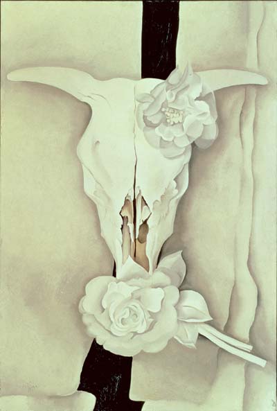 American, 1887 - 1986, Cow's Skull with Calico Roses, 1931, oil on