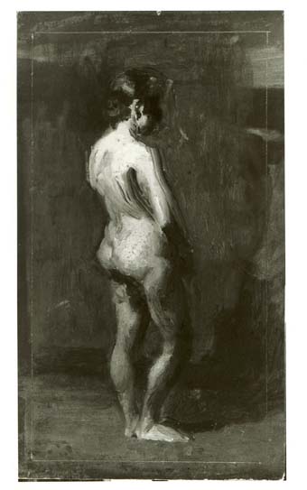 When Eakins' widow Susan Macdowell died in 1938, much of the artist's work remained in his fourth-floor studio in the Eakins family home, where he had lived since his boyhood. Shortly before the house was to be sold, Bregler made one last visit and found the floor littered with the artist's studies, considered too inconsequential at the time to merit attention and preservation. Bregler gathered what he could -- diaries, letters, oil sketches, plasters, photographs, memorabilia, and drawings -- and brought them to his own home. In 1944, in poor physical and financial health, Bregler sold the most presentable of Eakins' works in his collection, but the vast majority remained in his possession at the time of his death in 1958. Bregler's widow, Mary Louise Picozzi, soon moved to South Philadelphia, where she rebuffed dealers and curators interested in acquiring the 10 sculptures, 21 oils, 333 drawings, 300 glass negatives and positives, more than 500 photographs, and hundreds of personal papers and artifacts in her charge.[ii] In 1983, Mary Bregler finally admitted two young curators into her home and, in 1985, the Bregler Collection came to the Pennsylvania Academy. Today, Charles Bregler's Thomas Eakins Collection at the Academy allows new generations of Eakins admirers an opportunity to "rediscover" the art of America's most celebrated nineteenth-century portrait painter.[iii]