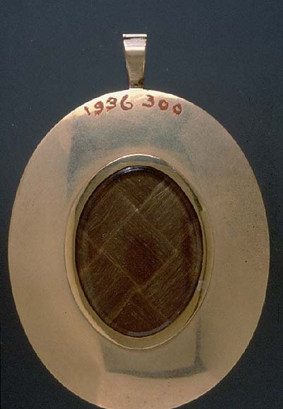 Inset compartment containing hair plaid on reverse of locket, Mabel Brady