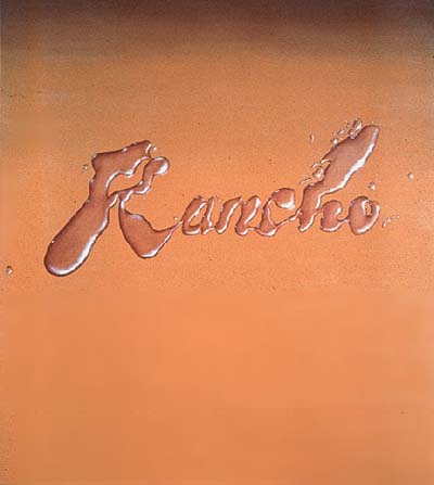 In 1969, in part wishing to avoid labels such as "West Coast Pop" and "the L.A. Look," Ruscha stopped painting altogether, turning after a few years to a more process-oriented approach in conceptually loaded imagery. In the evocative, optically stimulating "Very Angry People," 1973, bannerlike block letters spell out this phrase in cherry juice stained into moire fabric.