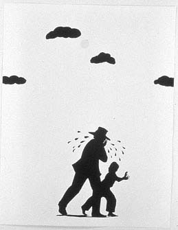 The First in a series of one-person exhibitions focusing on significant contemporary American women artists, Disturbing Allegories: New Graphics by Kara Walker will feature a newly published suite of prints by Kara Walker entitled The Emancipation Approximation. In these prints, which are based on Walker's installation at the Carnegie International 1999/2000, Carnegie Museum of Art, Pittsburgh, Pennsylvania, the artist utilizes her signature black-paper silhouette style to caricature the lives of slaves and masters in the antebellum American South, often with disturbing and racially challenging results. Walker likens her use of the silhouette, whose source is found in the Colonial-era model practiced by middle and upper-class, white Americans, to the racial stereotypes which she explores: "The silhouette says a lot with very little information, but that's also what the stereotype does." (left: print from suite of prints by Kara Walker entitled The Emancipation Approximation)
