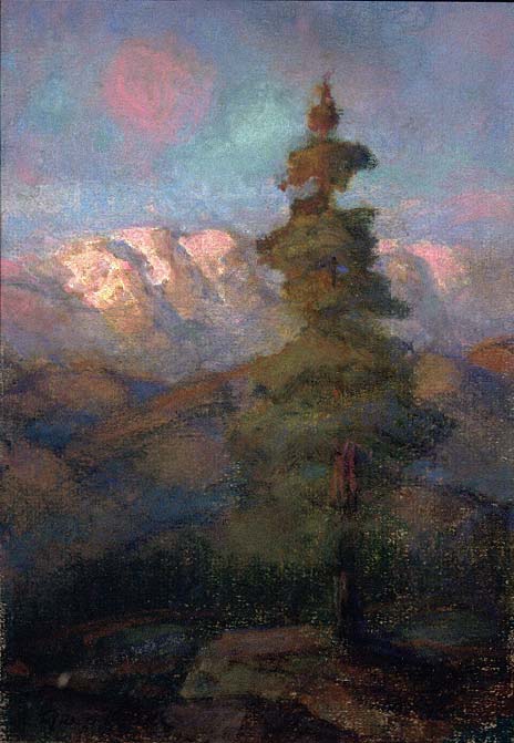 After immigrating to the United States in 1961 from Italy, Arny Karl also studied at Lukits' Academy. Jeffrey Morseburg, Lukits' biographer, believes Karl to be inspired by Lukits' pastels as well as those of the German and British Romanticists Caspar David Friedrich (1774-1840) and Joseph Mallard William Turner (1775-1841). His Blue Moments and Pink Moments, plein air pastels of the Sierra Mountains, convey the sublime and awe inspiring aspects of nature. (left: Arny Karl: Blue Moment, Sierras, 1995, Southern Alleghenies Museum of Art (97-049), Frank and Margaret Sullivan Fund; right: Pink Moments, Sierras, Southern Alleghenies Museum of Art (96-183)
