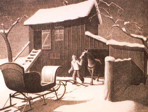 This print was the last in his incomplete calendar series and the last of his lithographs published by AAA for sale to the populace. Not surprisingly, this image has graced the front of many holiday greeting cards since its publication in 1941.
