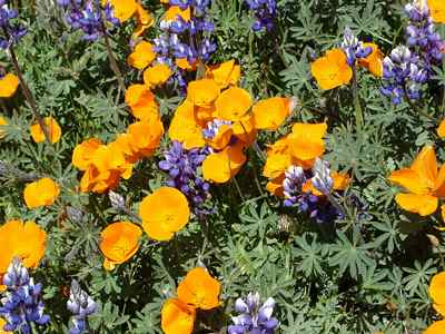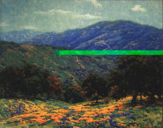 (above: California Poppies and Lupine, 2005, photo by B. A. Hazeltine, © 2005 B.A. Hazeltine. Poppies and lupine were frequently featured in the paintings of Granville Redmond. This photograph was taken near Los Olivos, CA in the Spring of 2005, a remarkable year for wildflower blooms in California)