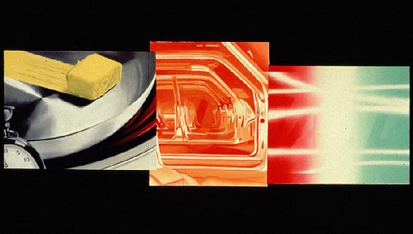 from his training as a billboard painter. The massive pat of butter slipping