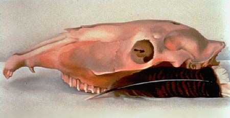 or Mule's Skull with Feather, 1936, oil on canvas, MAM, Gift of Jane