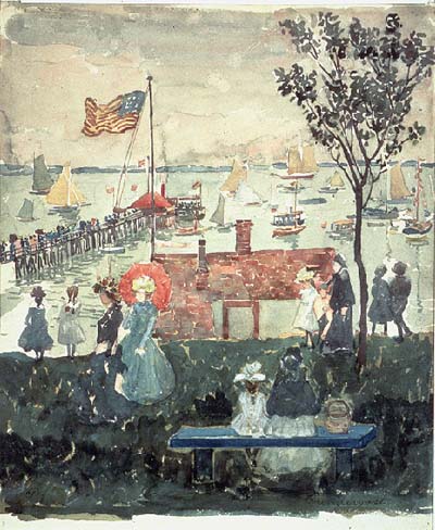 Among the artists whose work will be on view in the installation are Thomas Cole, Asher Brown Durand, George Inness, Winslow Homer, and John LaFarge. Future Summer Selections will present other choice examples from the Metropolitan's collection of American works on paper. (right: Maurice Prendergast (1858-1924), Excursionists, Nahant, ca. 1896-97, Watercolor, gouache, and graphite underdrawing on paper, 19 3/8 x 14 1/4 inches, The Metropolitan Museum of Art, the Lesley and Emma Sheafer Collection, Bequest of Emma A. Sheafer, 1973, (1974.356.2), Photograph by Geoffrey Clements, © The Metropolitan Museum of Art, New York )