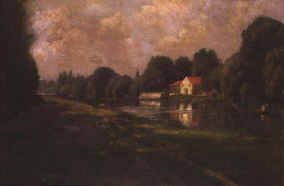 On a Belgian River, oil on masonite, 20 1/8 x 30 1/4 inches)