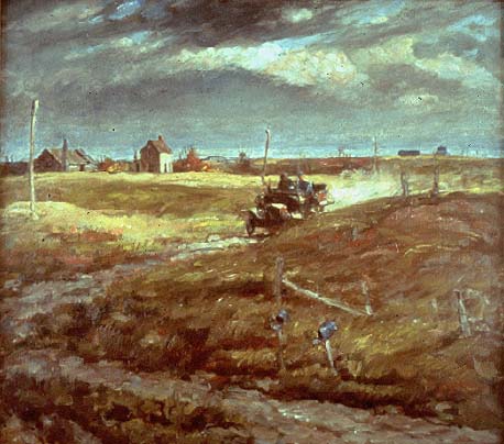 (left: Harvey Dunn, No Rain Fell, 1924, oil on canvas, 26 x 42 inches,
