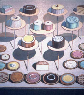 (left: Wayne Thiebaud, Cakes & Pies, 1994-5, oil on canvas,