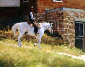 "It has become a major element of interpretation of the relationship between horse and man," said Bill Cooke, director of the International Museum of the Horse. (left: Gayla Wiedenheft, Afternoon Commute at Grant-Kohrs Ranch, 20 x 24 inches, oil)