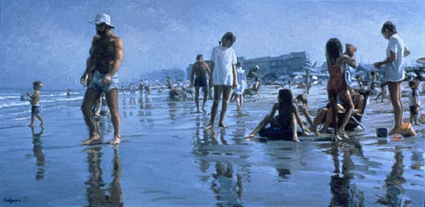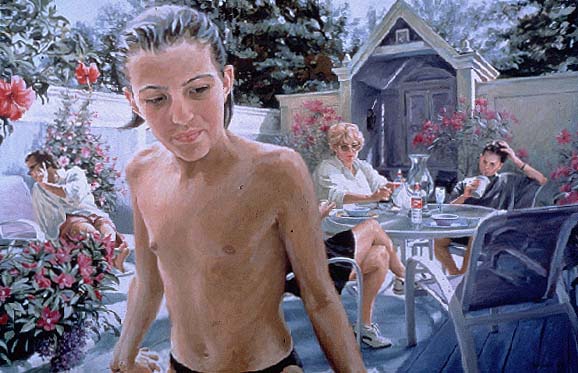 Exposing upper class American life in his paintings, Rodgers successfully catches the subtle expressions and interactions, revealing the unspoken attitudes of his subjects. (left: Rehoboth, oil)