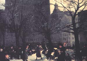 Sloan, Nursemaids, Madison Square, 1907, oil on canvas)