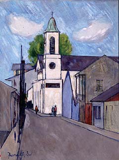 Frank Wyley (1905-1978) was born in Long Beach, Miss. He moved to New Orleans at the age of five, where he lived until his death. He worked as a porter and taught himself to paint and make prints through studying books and magazines. Influenced by Paul Cezanne, Raoul Dufy, Henri Matisse and Georges Roualt, his work ranges from portraiture to Cubist still-lifes to New Orleans cityscapes. (right: Frank Wyley, St. Augustine Church, undated, oil on canvas, 23.5 x 17.5 inches)