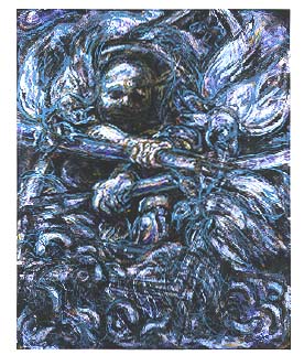 Palumbo, Fisherman Under Attack, 2002, acrylic on canvas, 50 x 40
