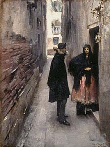 Sargent sought new subject matter in the peasant life of Naples and Capri. Head of a Capri Girl (1878), represents one of the intriguing local models that Sargent loved to paint. In 1880, he took a studio in Venice. Street in Venice (1880-82) is one of Sargent's first major Italian works and one of the most significant of his early views of Venice. The painting exemplifies Sargent's attraction to the lesser-known parts and people of Venice and his interest in realistically depicting the gritty physical details of the Venetian environment. But in Paris, portraits were driving Sargent's career. With the exception on one subsequent visit, Sargent did not return to Italy until he had established himself as the leading portrait painter in the English-speaking world.