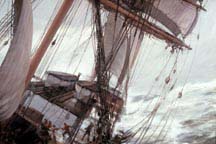 Zoltan Sepeshy closely rendered the toil necessary to earn a living as a Great Lakes fisherman in Mending Row while William Shayer romanticizes manual labor in Fisherfolk on the Beach. Both Winslow Homer in Perils of the Sea and Montague Dawson in Gunnell Under demonstrated that earning a living on the high seas is fraught with danger and even terror.