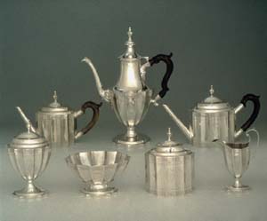 on display. (left: John LeTellier (working ca. 1770-1800), Seven-piece