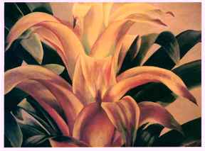 Anthony Biladeau has taught printmaking and drawing at the University of Massachusetts, Amherst, Indian River Community College, Manatee Community College, and painting for children at the museum. He has also participated in group and solo exhibitions throughout Massachusetts and Florida. Currently, his medium of choice is acrylic painting. Biladeau's works which will be featured in this exhibition are stylized floral still-lifesÐmagnified, luscious flora and vegetation depicted in luminous, pristine color. (left: Anthony Biladeau, Golden Bromeliad, 2000, acrylic, 30 x 36 inches)