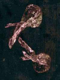 Also on exhibit in the Benaroya Glass Gallery at MoNA from October 11 - January 4, 2004 is sculpture by Martin Blank. His hot, sculpted abstract glass forms have evolved from basic experimentation with shape and motion to a complex and sensual interaction with textures, shapes and energy. Subtle, powerful and fluid, Martin Blank's work has brought him national notice. (right: Martin Blank, Dipping from the Well, 2001, 62 x 42 x 24 inches, Photo: Douglas Schaible, courtesy of William Traver Gallery, Seattle, WA)