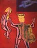Compositions which combine human forms and schematic drawing reflect his admiration for Constructivism, the pure geometric abstraction pioneered by Russian artists in the early 20th century. The untitled diagrams and figured works which comprise "Dow Jones Industrial Art" offer an outsider's view of American commerce, at once admiring and critical. In some, such as "King Midas" and "Golden Calf" Elinson blends biblical, mythological and pop culture references to produce icons of a Western capitalist religion. The ink drawing series, "Homage to Bruno Schulz" is dedicated to the Polish-Jewish writer and artist who perished in the Holocaust. Schulz' letters, like Elinson's work, reveal the artist's inner tensions and strugles when creativity is compromised by difficult external circumstances and emotional turmoil.