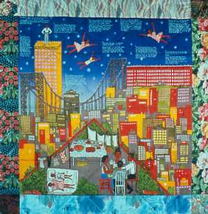 Faith Ringgold, Tar Beach 2, 1990, silkscreen on quilt, 66 x 66 inches,
